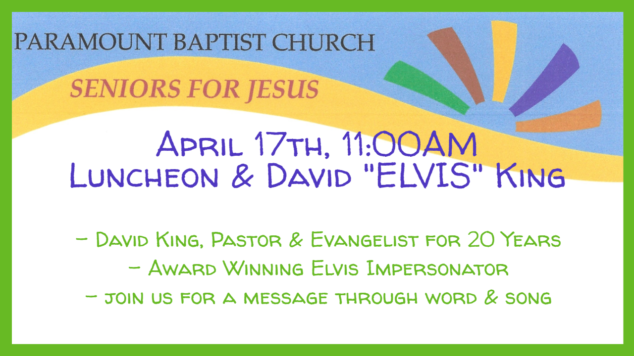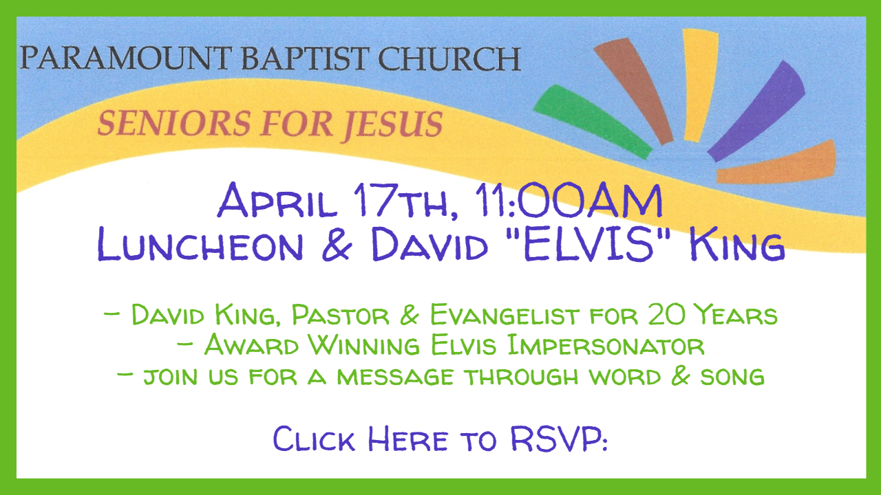 Paramount Baptist Church exists to glorify God by making Disciples who are committed to Christ and His Church. We are committed to reaching lost people, training saved people, loving all people, and becoming a holy people who live for Jesus.