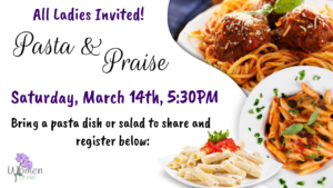 Women's Ministry Pasta & Praise Dinner Women's Ministry Pasta & Praise Dinner First Name * Last name * Email * Phone * Number * I would like to bring: * a pasta dish a salad Submit If you are human, leave this field blank.